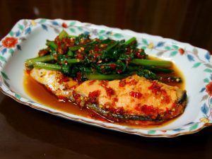 Tumis Salmon Bayam Pedas
